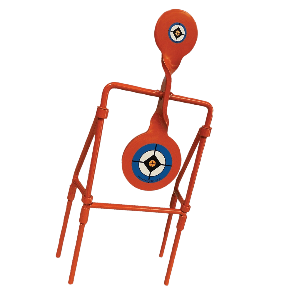 Double Blast target w/ orange powder coat. For soft nosed lead only. Handguns 9mm to .45 and rifles .223 to .30-06.