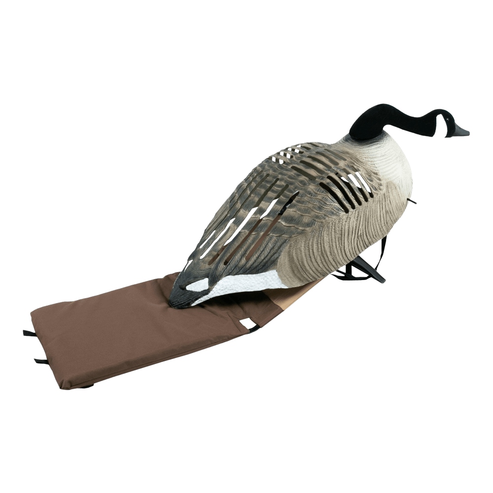 With a 180° field of vision, the hunter can monitor geese flying into the area through the convenient cut-out slots on the goose decoy. The padded seat and pillow provide exceptional comfort during long periods of waiting, while the PVC backrest remains dry even in wet conditions. For effortless transportation, the Lucky Duck Goose Chair Layout Blind is equipped with shoulder straps and features a two-piece removable flocked head design.