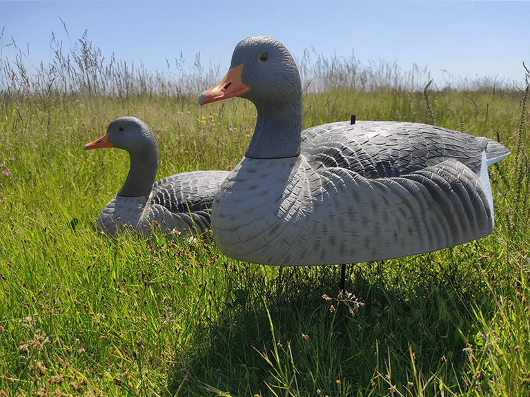 Ils peuvent supporter quelques chocs, peuvent être emballés directement dans le sac et sont également protégés contre les UV. N’hésitez pas à acheter un bon mélange de coquilles qui ressemblent à des oies couchées et de formes en corps entier qui représentent des oies debout actives. Plus vous avez de positions corporelles et de têtes différentes dans le troupeau, plus vous vous rapprochez de quelque chose qui ressemble à des oies vivantes. La plupart des nouveaux formes d’oies sont conçus pour pouvoir bouger dans le vent. Le mouvement dans le troupeau de formes est vraiment important et fait la différence entre si les oies voient le troupeau et réagissent positivement ou si elles passent simplement leur chemin.