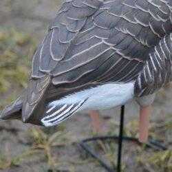 Avian-X a investi des centaines d’heures pour concevoir et peindre chaque type d’oiseau – dans ce cas – l’oie cendrée, et il en résulte des leurres avec des détails extrêmes, à la fois dans l’anatomie, les positions de la tête et les postures du corps. Ce procédé unique permet de faire des leurres une copie exacte de la réalité.