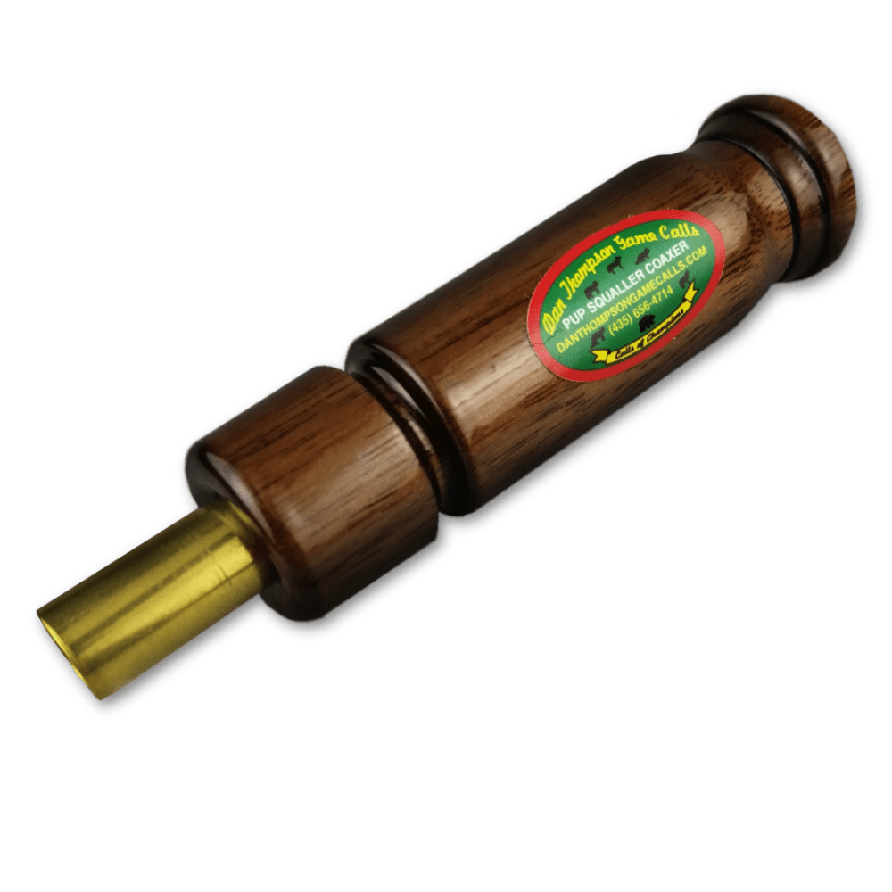 Pup squaller coaxer fox call from American Dan Thompson Calls. You have the effective hare scream at one end and a mouse pipe in the other end to lure the fox up close.