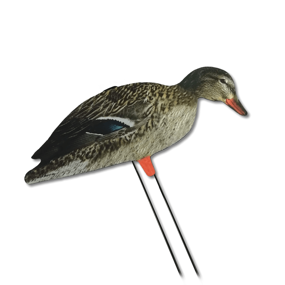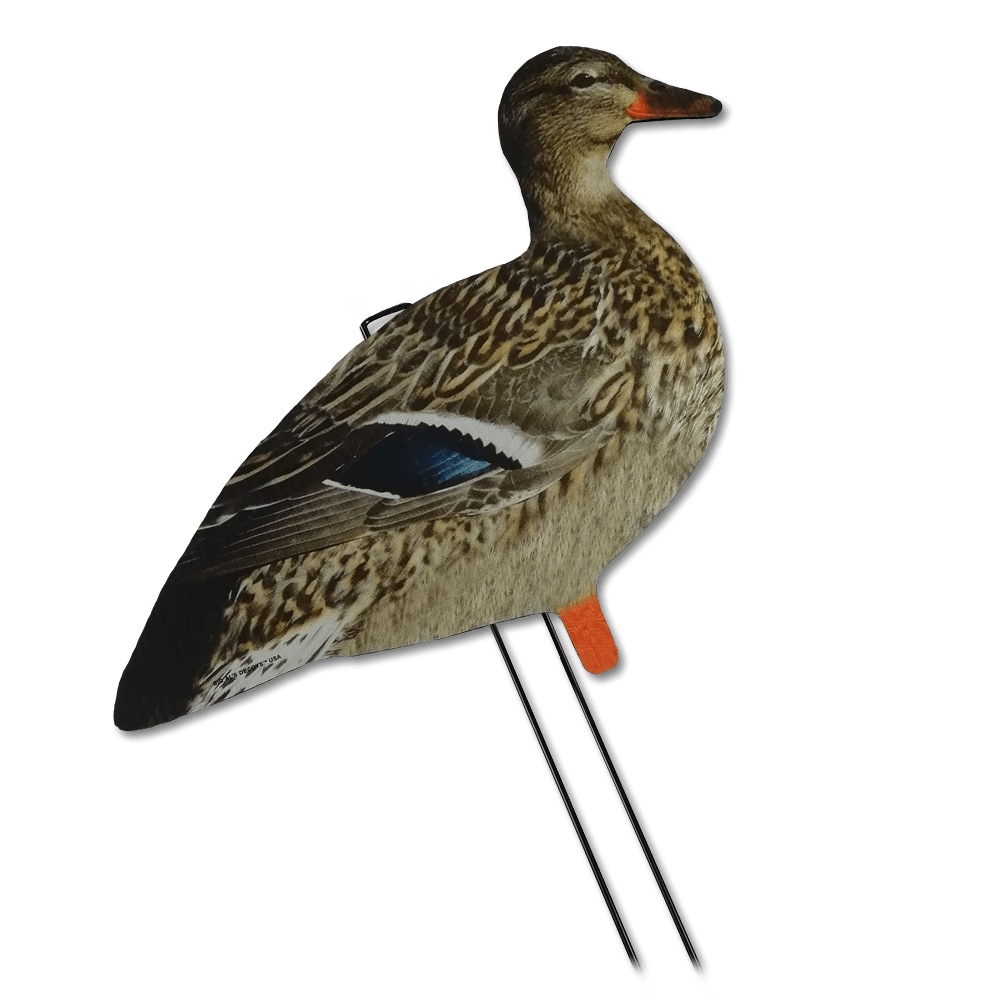 Place the Big Al’s silhouettes in a varied setup along with full body decoys, shells and Sillosocks. This is a very effective way to blur your blind, as the ducks will be focused on the number of ducks that have landed to eat.