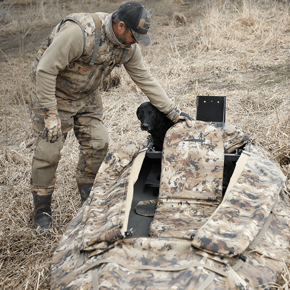 The Invisi-Lounge is perfect for several hunting situations. It is very suitable as a seat and back support when hunting from a boat or goose hunting