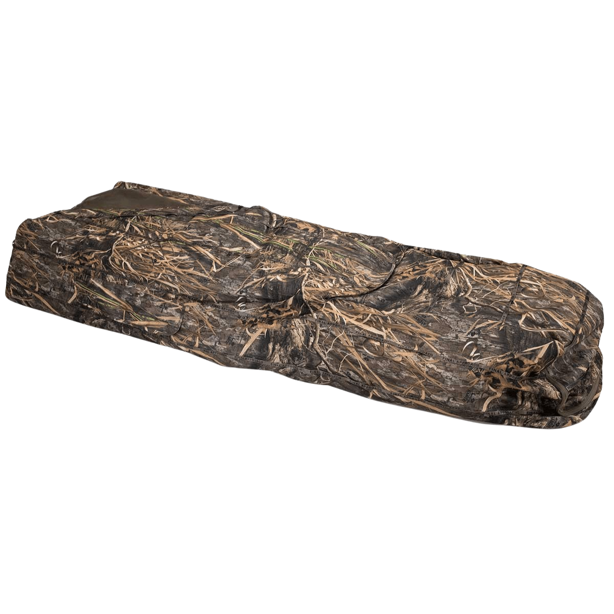 - Low profile goose hide with backrest, lightweight aluminum frame and doors with mesh in front of the face