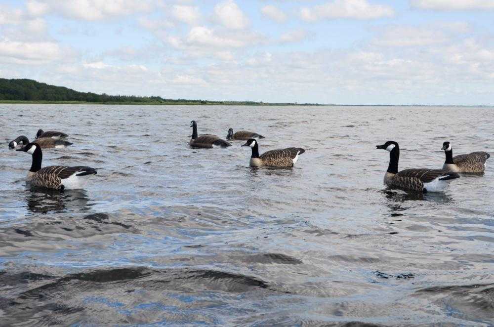 4 floating Canada goose decoys from the topflight series designed by legendary waterfowler Fred Zink and World Champion decoy carver, Rick Johannsen.