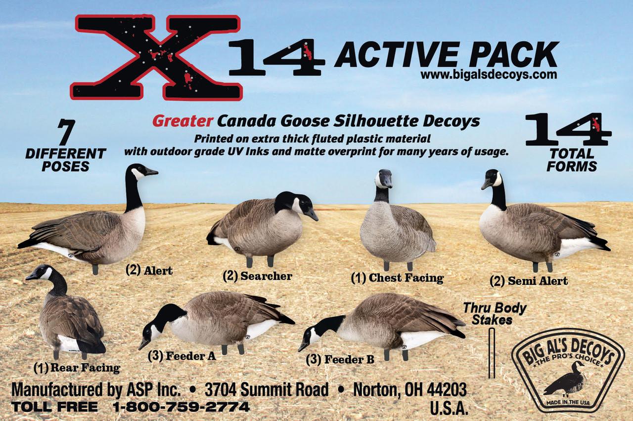 Sillosocks add movement to the spread but the wind will point the decoys into the same direction – which is not natural. Place the Big Al’s silhouettes in a varied setup along with full body decoys, shells and Sillosocks. This is a very effective way to blur your layout blind, as the geese will be focused on the number of geese that have landed to eat.