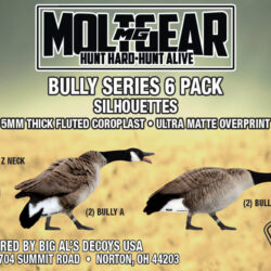 Sillosocks add movement to the spread but the wind will point the decoys into the same direction – which is not natural. Place the Big Al’s silhouettes in a varied setup along with full body decoys, shells and Sillosocks. This is a very effective way to blur your layout blind, as the geese will be focused on the number of geese that have landed to eat.