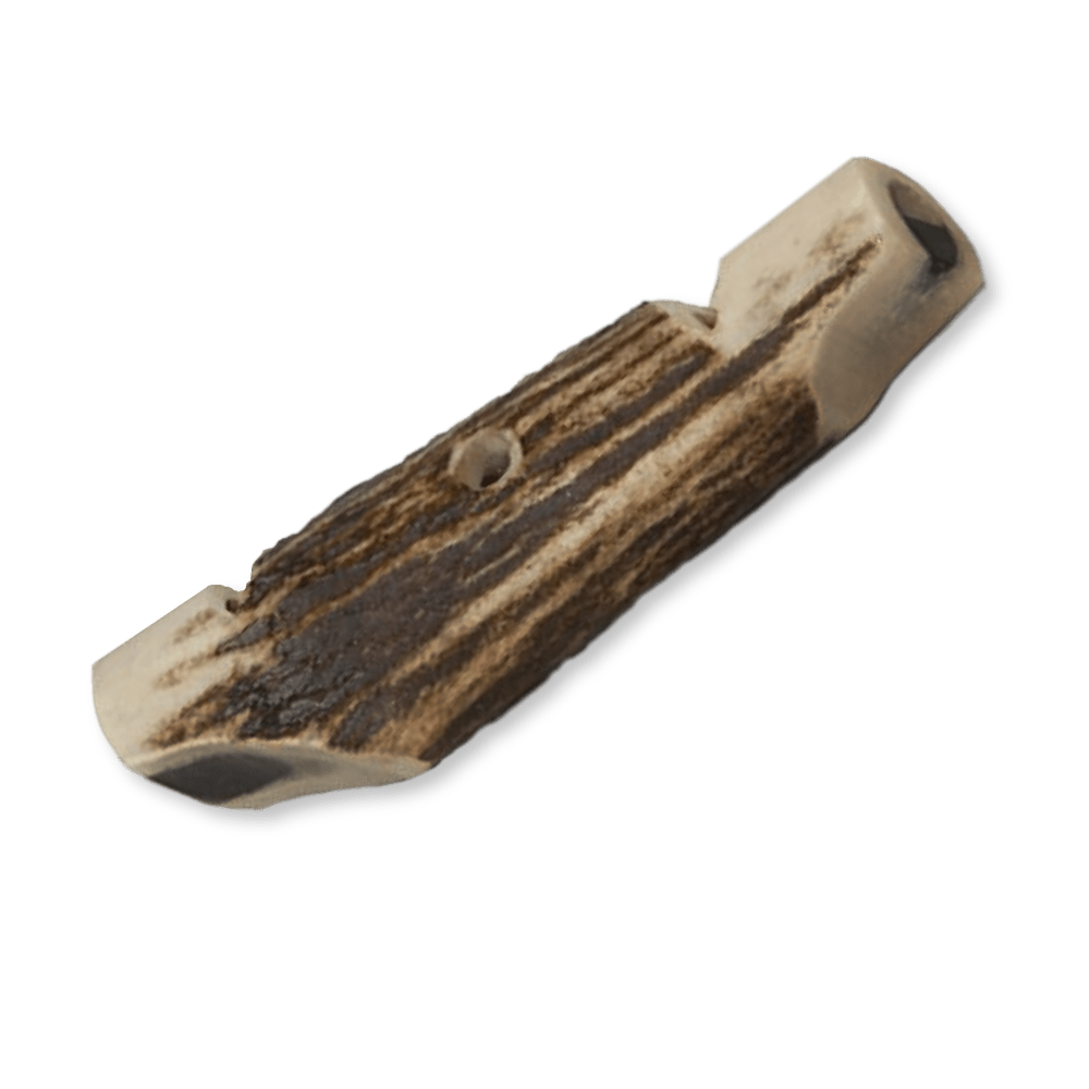Exclusive 2-sided dog whistle made from indestructible stag horn.