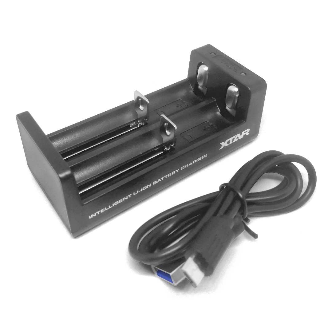 The charger can charge 2 batteries and has an indicator to show the battery’s charge level.