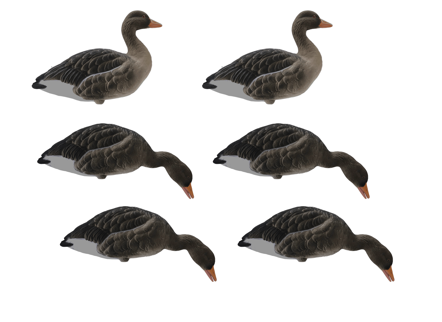 In the box are 6 x full body greylag flocked decoys with 2 different head positions – 2 x sentry and 4 x feeders.