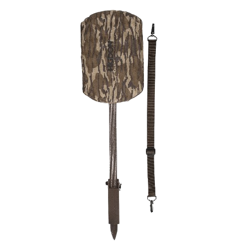 Higdon Outdoors Marsh Stool with padded seat covered with fabric in nice Bottomland Camo.