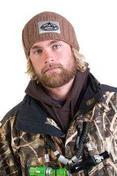 A warm and super cool knitted hat in lamb wool and angora with fleece lining protecting the ears on cold and windy hunting days. One Size fits all.